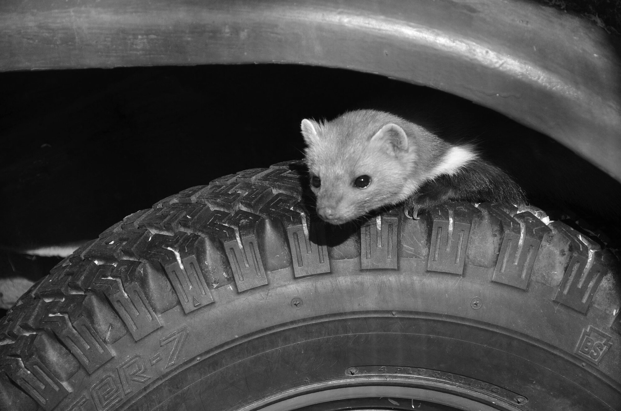 Dieser Steinmarder hat sich wohl das Auto als Rückzugsort ausgesucht, der Motorraum bietet ihm Schutz und Wärme. Nach längerem warten kam der scheue Gast hervor.