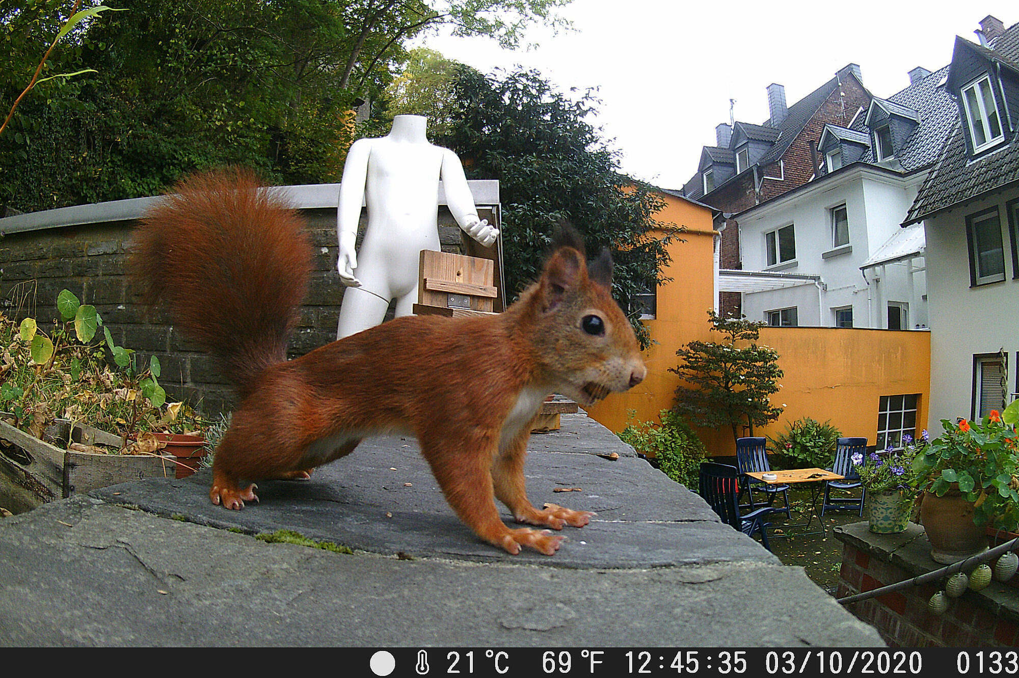 Mitten in der Oberstadt unter dem Schloss konnte eine Wildtierkamera dieses Eichhörnchen festhalten, das sich eine Haselnuss geschnappt hat. Ein toller Schnappschuss!