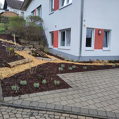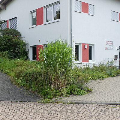 Die St. Franziskus Kita in Burbach reichte ein Modell eines insektenfreundlichen Vorgartens ein, mit Platz zum Verweilen, Naschen und Beobachten und gewann damit den 2. Platz. Der Garten- und Landschaftsbaubetrieb Brücher aus Neunkirchen übernahm hier die Umsetzung. Nachdem der alte Bewuchs entfernt worden war, entstand ein einladender Vorgarten mit Stauden, Beerensträuchern, Kräutern und einem Totholzhaufen für Insekten.